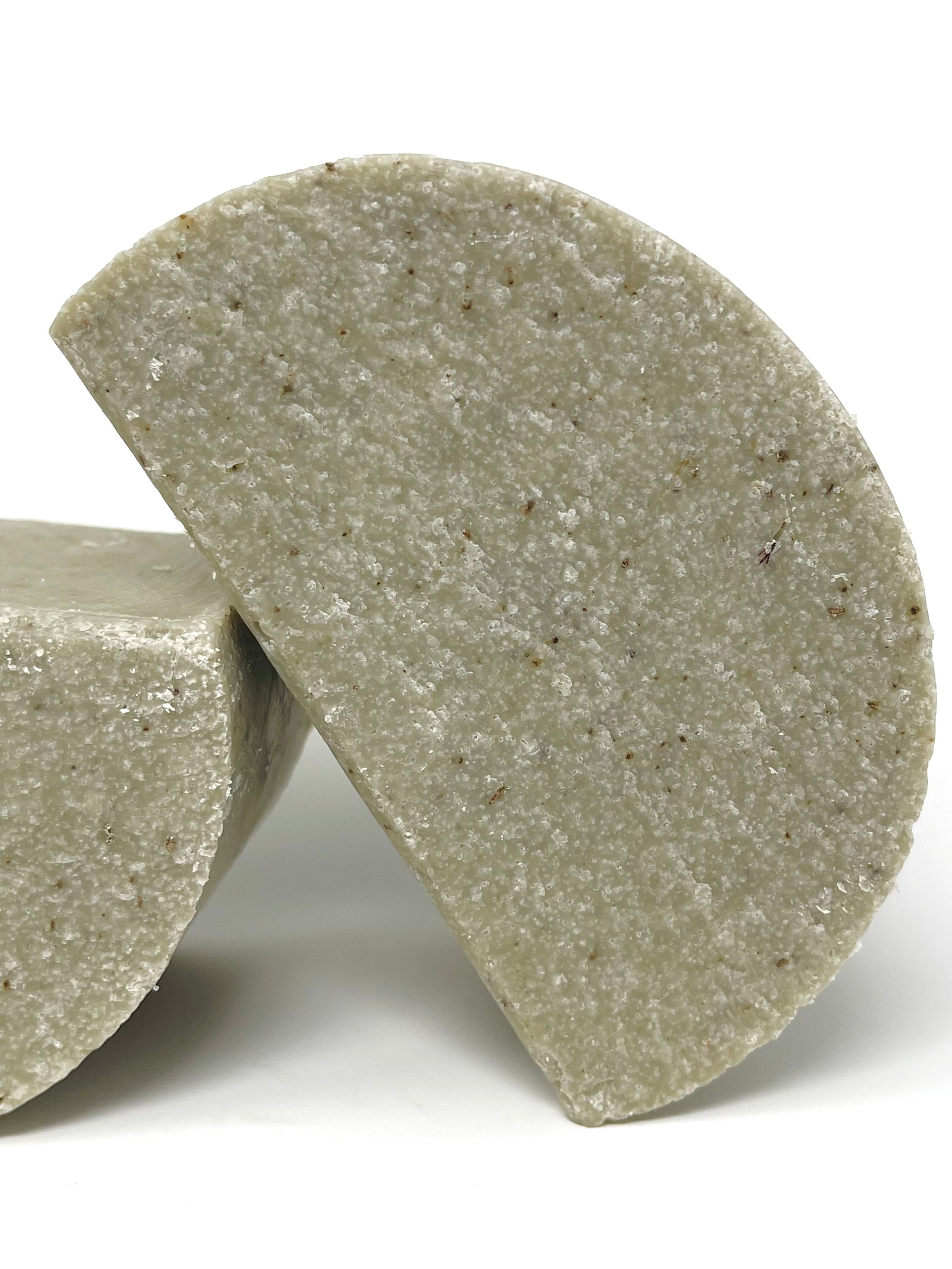 The high salt content makes these bars hard like stones, and longer lasting. Over time, the soap takes on the appearance of a smooth stone.